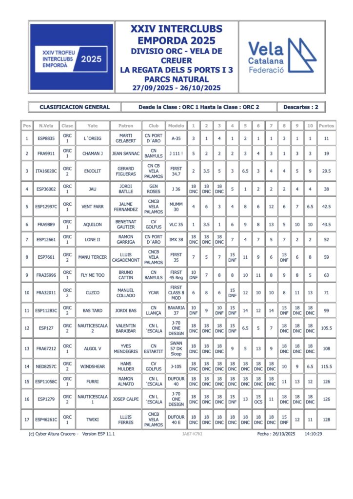 L’Ycar est classé 2e meilleur club derrière le CN Port d’Aro