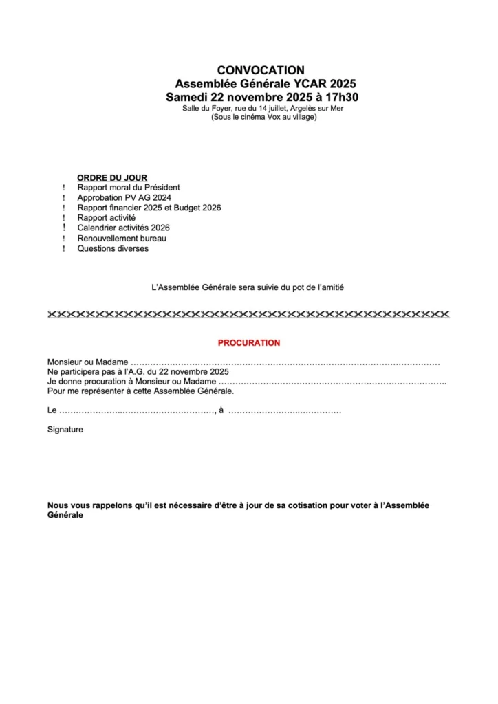 Accueil > Actualité > 2025 > ASSEMBLEE GENERALE DE l’YCAR