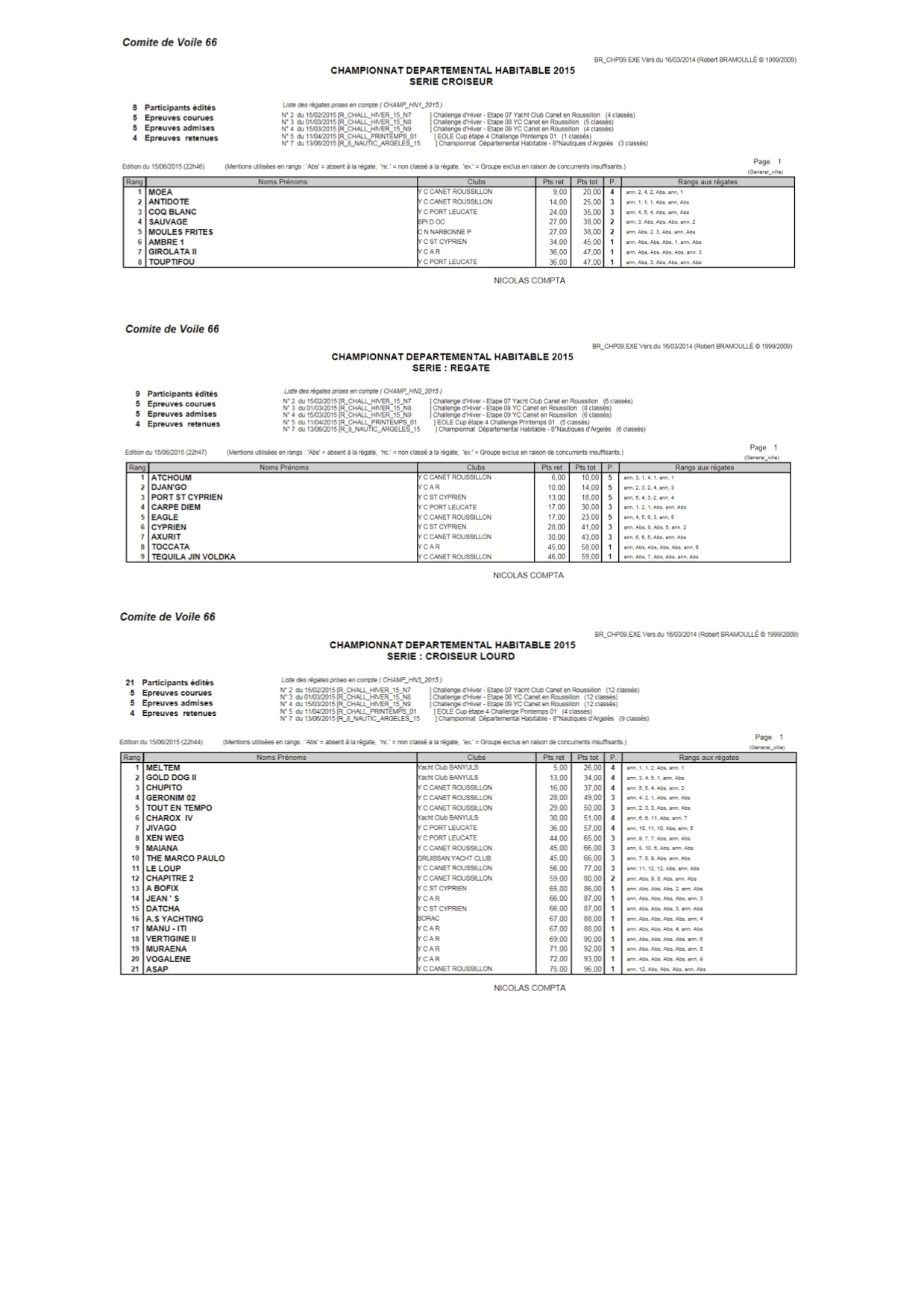 Voilà le Championnat du Roussillon habitable 2015 c’est terminé avec les Nautiques d’Argelès. 38 bateaux classés pas de surprise sur le podium où on retrouve les plus réguliers sur la plus haute marche;