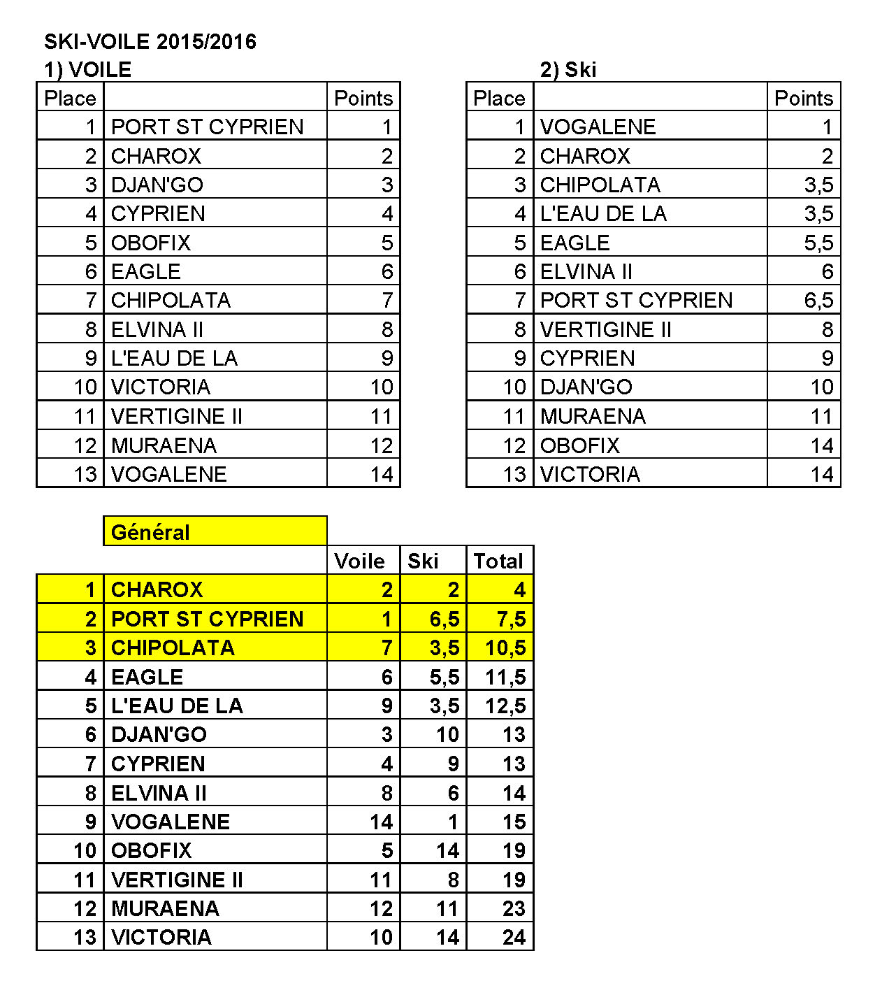 A l’issu des 2 manches voile + ski « Charox IV » le first 38S skippé par Michel Julien avec comme équipage Laurent Sagols, Paul Coderc, Robert Masquefa et Etienne Lebleu remporte ski-voile 2015/2016. L’équipage au grand complet était présent aux deux épreuves. Comme quoi l’assiduité ça paye.