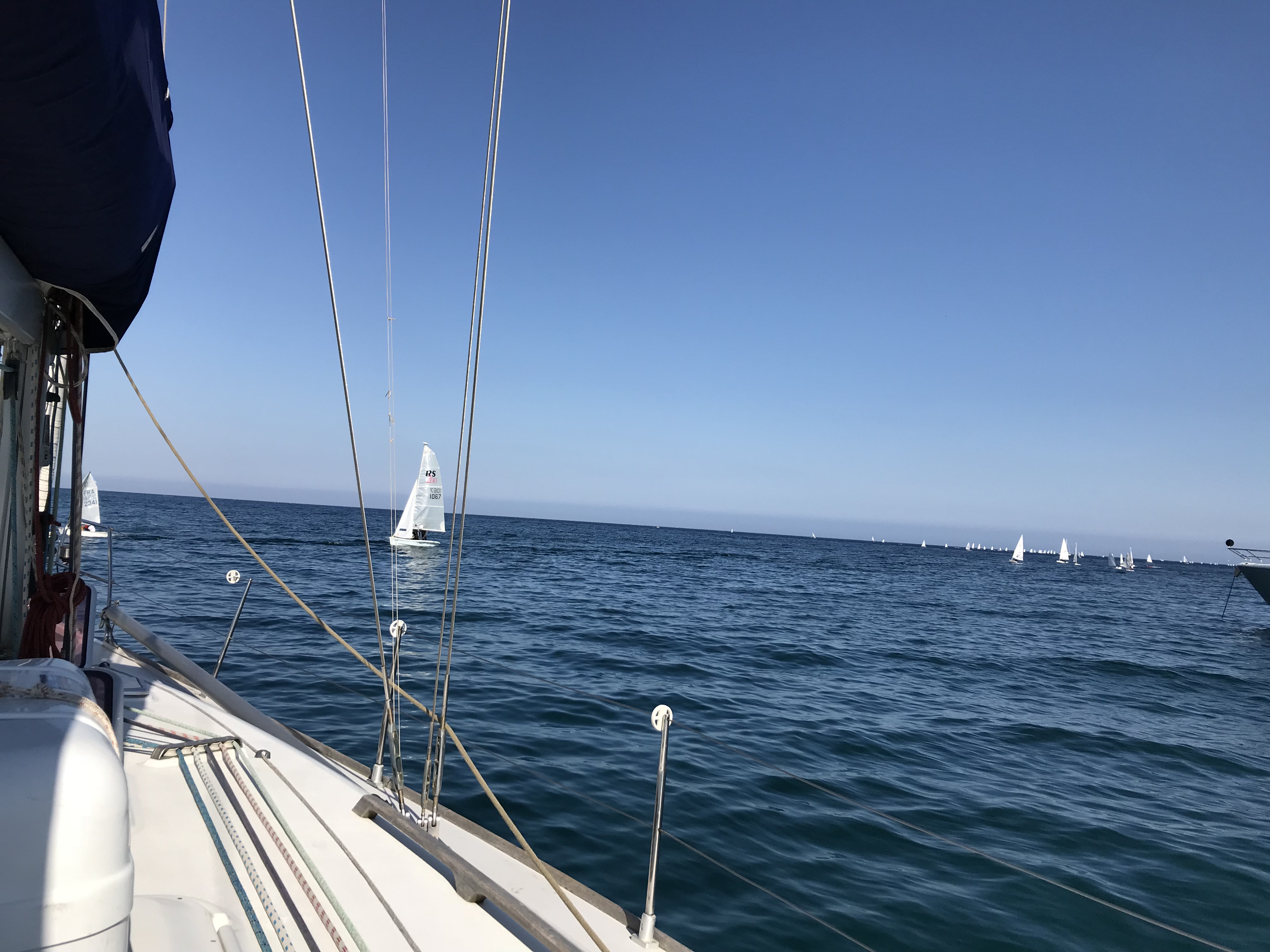 Petit bonus devant le port où une régate de dériveurs d’une centaine de voiles blanches assurait le spectacle.