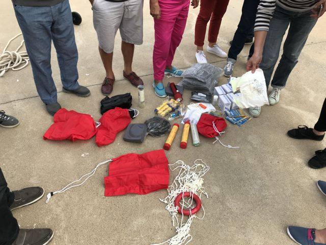 A la remise des lots c’est Vogalène qui gagne le grutage offert par la capitainerie d’Argelès. Puis distribution parmi tous les participants du dépeçage de la survie (kit de pêche, gonfleur, couvertures survie, pharmacie, miroir, kit réparation…)