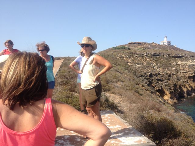 Ces îles dépendent maintenant du ministère espagnol de l’environnement. 4 permanents vivent sur l’ile, relayés tous les 15 jours. Tout en montant jusqu’au phare notre charmante guide nous explique l’historique, la faune et la flore propre à cet archipel. Bien qu’il n’y ait plus de couleuvres depuis longtemps, nous n’avons pas le droit de sortir de l’unique chemin, ni de ramasser quoi que ce soit. Le site est très sec et aride. Tout est laissé volontairement en l’état, il n’y a aucune intervention humaine.