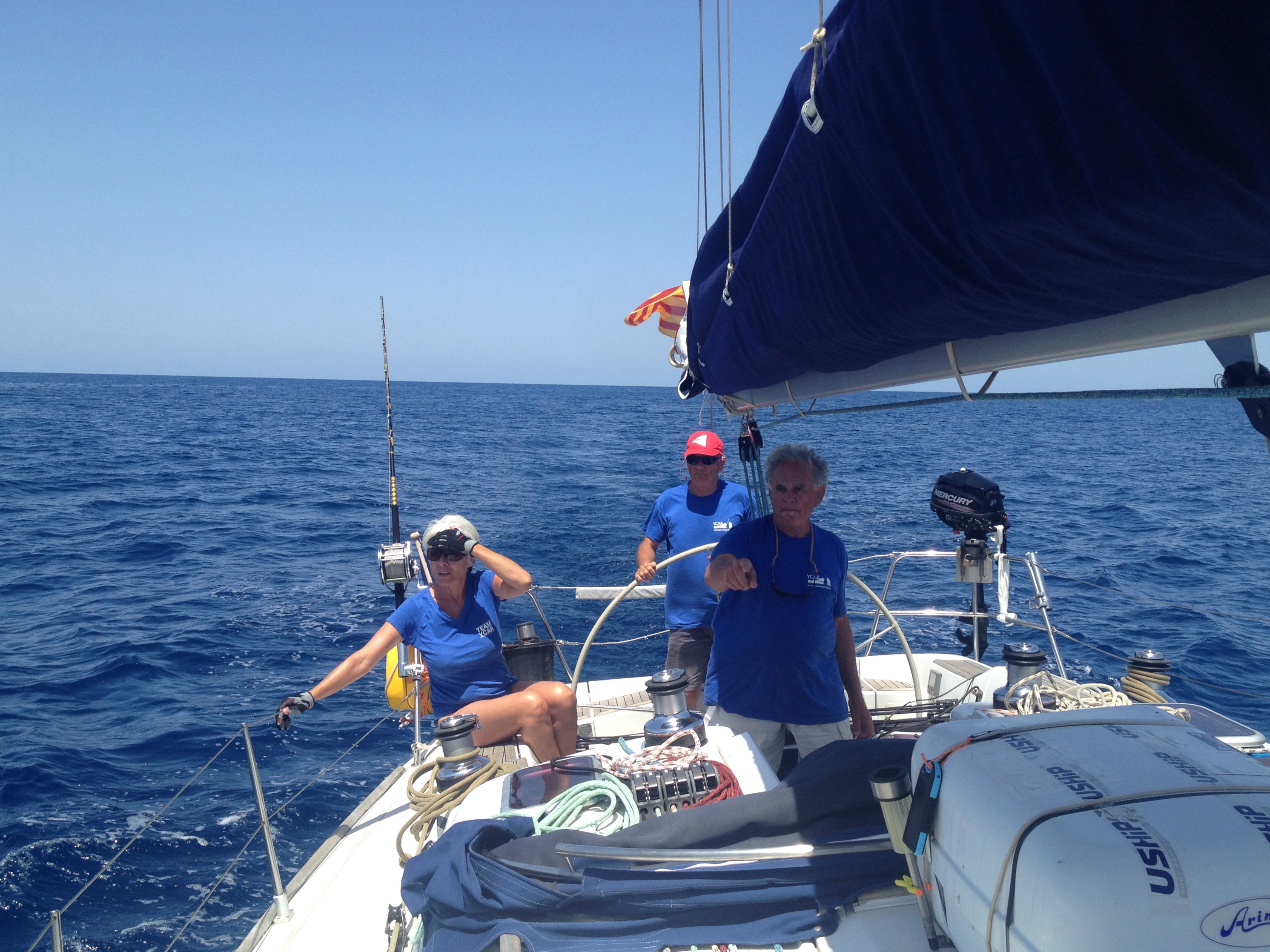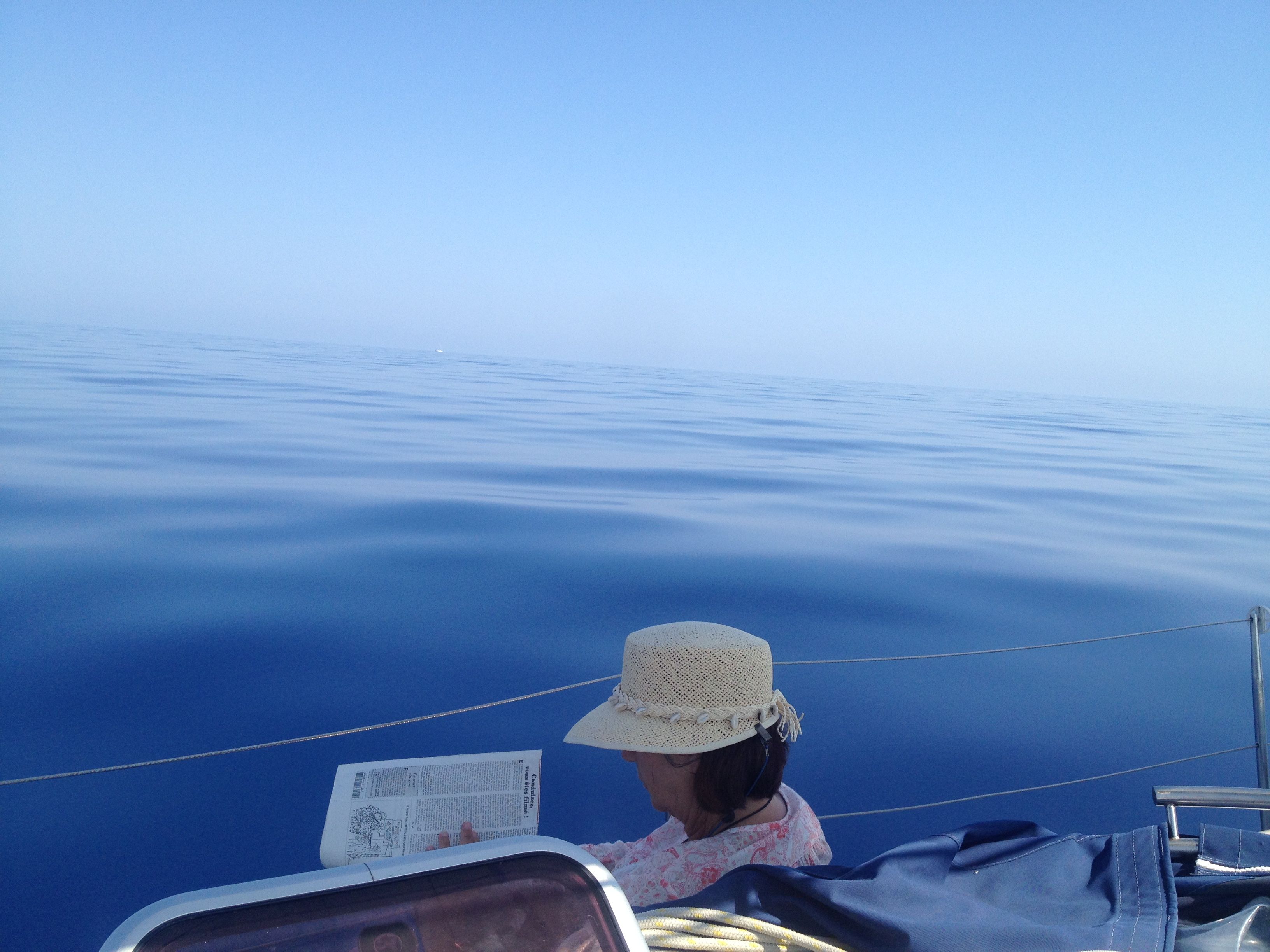 Nous faisons cette traversée dans des conditions de navigation terribles et éprouvantes : vent bon plein 10/15 nds, mer plate, ciel pur. Dur Dur !