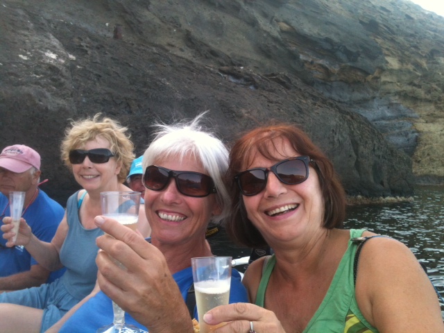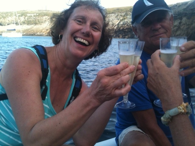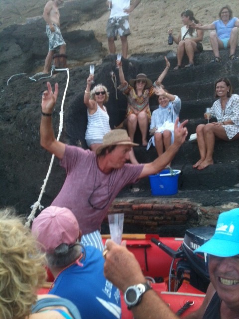 Bonne surprise au retour à l’annexe : un des skippers offre des coupes de Cava à tout le monde dans une franche et bonne ambiance.