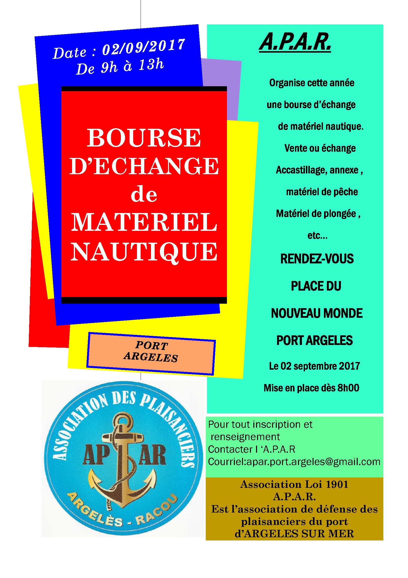 A l’occasion de la « Trobade Marinera » nos amis de l’APAR, organisent le samedi 2 septembre une bourse d’échange de matériel nautique.