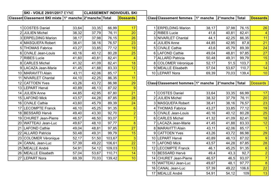 Le jours se suivent et ne se ressemblent pas. Après les tempêtes de neige de la veille, grand beau temps pour ce dimanche de compétition. Super neige bien damé, pétole (pour le ski c’est l’idéal). Beau slalom mis en place par nos amis de l’Ecole de ski d’Eyne. (Merci à eux) Vingt neuf concurrents au départ pour 2 manches de la partie ski.